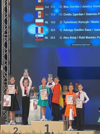O felicităm cordial pe Emiliana Procopciuc, eleva noastră din clasa a VI-a „B”, pentru performanțele deosebite obținute în cadrul Concursului internațional de dansuri sportive europene, categoria de până la 12 ani, desfășurat pe 18-19 septembrie 2021, la Brno, Republica Cehă! Talentata pereche – Emiliana Procopciuc și Ștefan Mantu –au obținut o victorie senzațională, DOUA MEDALII DE AUR, la secțiunea Latino și Standart.
