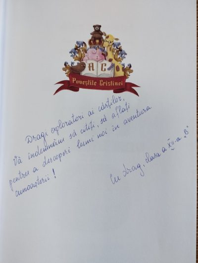 Mulțumiri cordiale și aprecieri alese exprimăm doamnei Dina Danilov, diriginta clasei a XII-a „B”, profesoară de limbă și literatură română și doamnei Angela Lungu, director adjunct pentru educație, profesoară de limba și literatura română, pentru cultivarea permanentă a interesului pentru lectură la elevi.