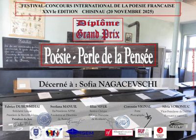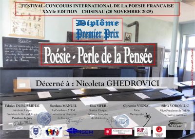 Elevele Liceului de Creativitate și Inventică „Prometeu-Protalent” – Gloria Iurco din clasa a VIII-a „C”, Sofia Nagacevschi din clasa a VI-a „D” au obținut Premiul Mare, iar elevele Andreea Carlașuc și Nicoleta Ghedrovici din clasa a VIII-a „C” au fost apreciate cu Premiul Întâi la Concursul Internațional de poezie franceză – „POÉSIE – PERLES DE PENSÉE”, ediția a XXVI-a. Mentorul elevelor noastre în această competiție prestigioasă a fost distinsa doamnă Silvia Voroniuc, profesoară de limba franceză, gr. didactic superior.